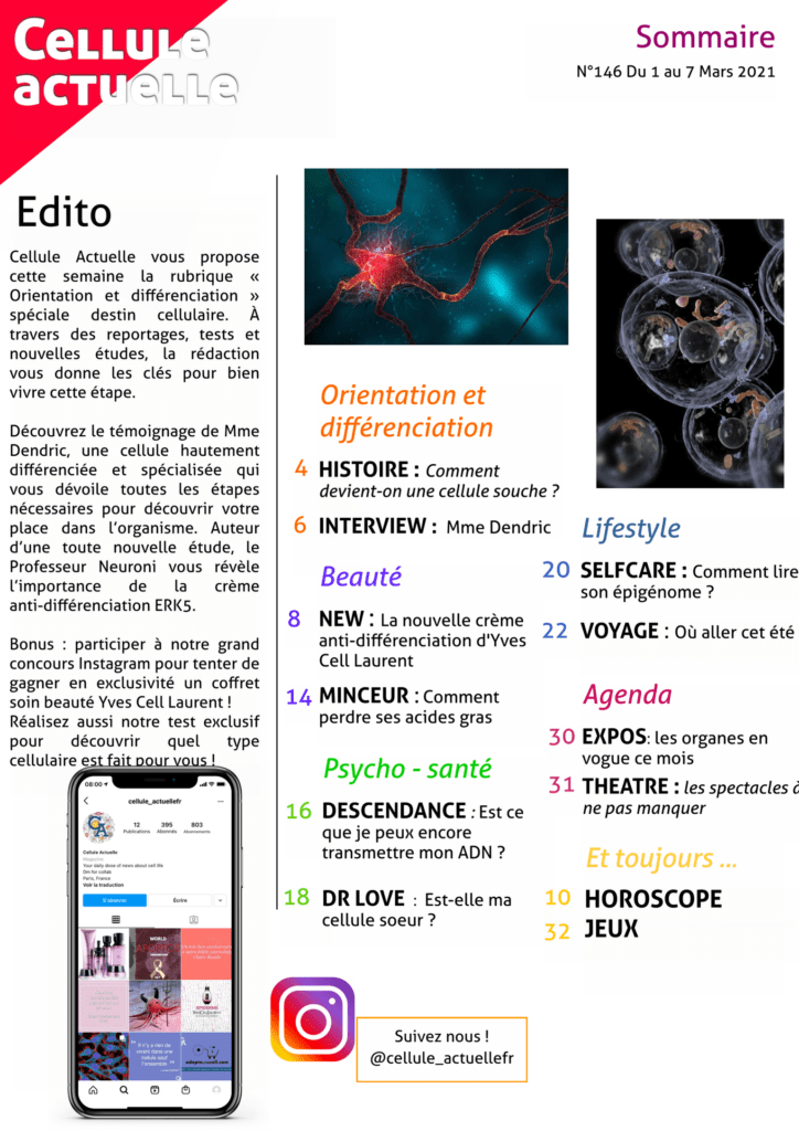 Consultez le 1er numéro du mois de Mars du magazine “Cellule Actuelle” (Magazine pour les cellules).
